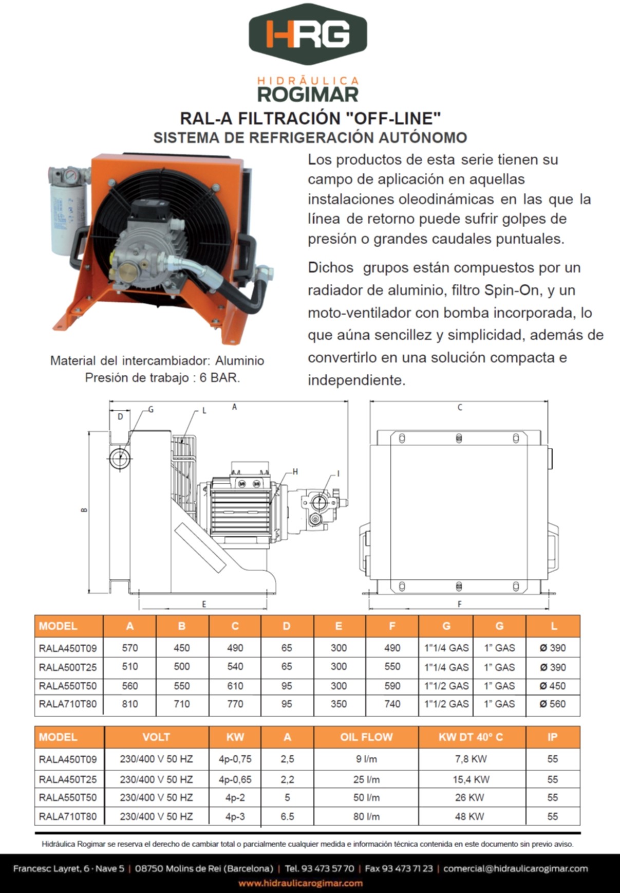 El sistema se suministra completo para su instalación. La bomba de circulación incorporada permite la refrigeración y la filtración del aceite en un circuito separado, refrigerando en un circuito secundario.